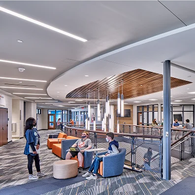 Strategically phased over two and a half years to maintain safety and minimize disruption to daily operations, the high school was completed between May 2018 and September 2020. The scope included a new main entrance and multipurpose lobby, 18 classrooms, four science labs, a weight room, expanded cafeteria, and renovations to locker and hallway spaces. Major site and infrastructure upgrades — such as a new roof and reconfigured parking — improved traffic flow and functionality, while flexible learning environments and a relocated media center enabled a new centralized administration wing designed for 21st-century education.