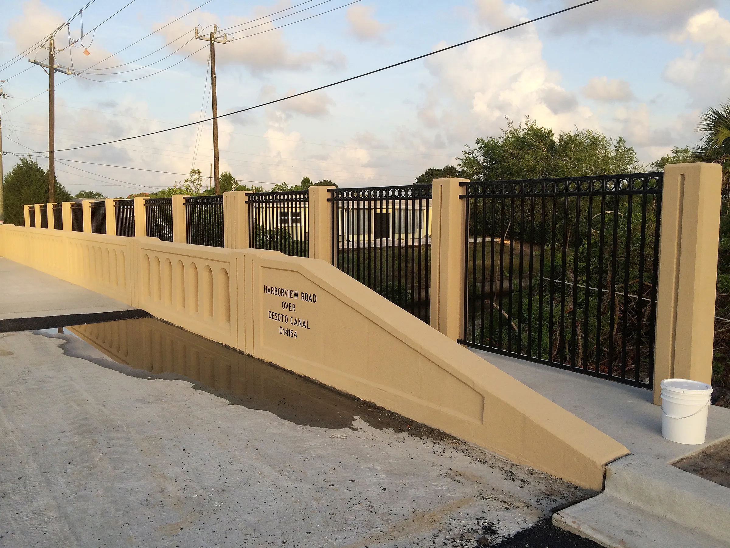 The project replaced bridge structure 014017 at the Desoto Canal with a precast concrete deck bridge and a temporary bridge with related structures with a school zone and church zone in the area. Construction included maintenance of traffic, erosion control, clearing and grubbing and excavation and embankment stabilizing. The roadwork included mill & overlay, concrete driveway and sidewalk reconstruction and drainage. Structure foundations, structural steel & bridge deck joints along with concrete curb and gutter. Special traffic barriers and a pedestrian railing installed for local school children and other pedestrians. Pull & junction boxes, highway signs, reflective signage & pavement markers were also installed.