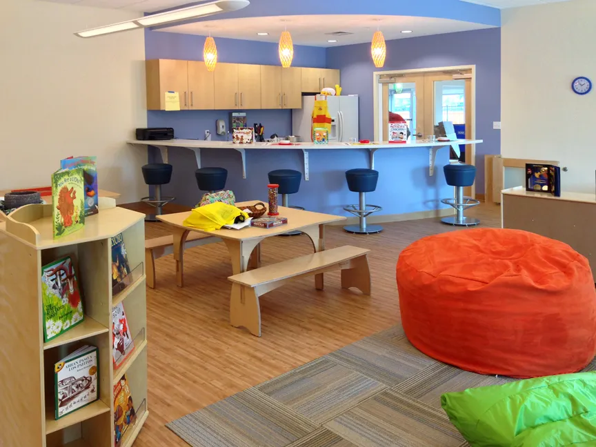 The project renovation completely transformed an existing warehouse building on the Chico's Fort Myers campus into a bright and airy space that reflects Chico’s FAS, Inc.’s design sensibility and commitment to families and children. The center is surrounded by four age-appropriate natural play areas, as well as the all-ages spray park, providing abundant access to green space and outdoor activity.