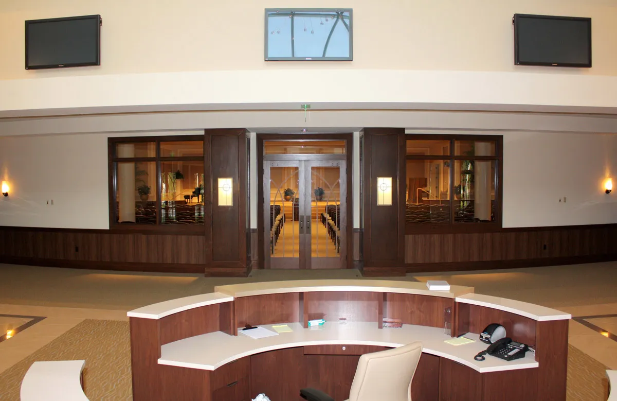Phase I of the planned project included demolition of seven existing structures, extensive site work on 15 acres including a relocation of a 3 acre lake and improvements to adjoining roadways in addition to the construction of the 36,000 square foot facility. The church features a two-story tall open lobby/reception area and a state of the art audio/visual system.