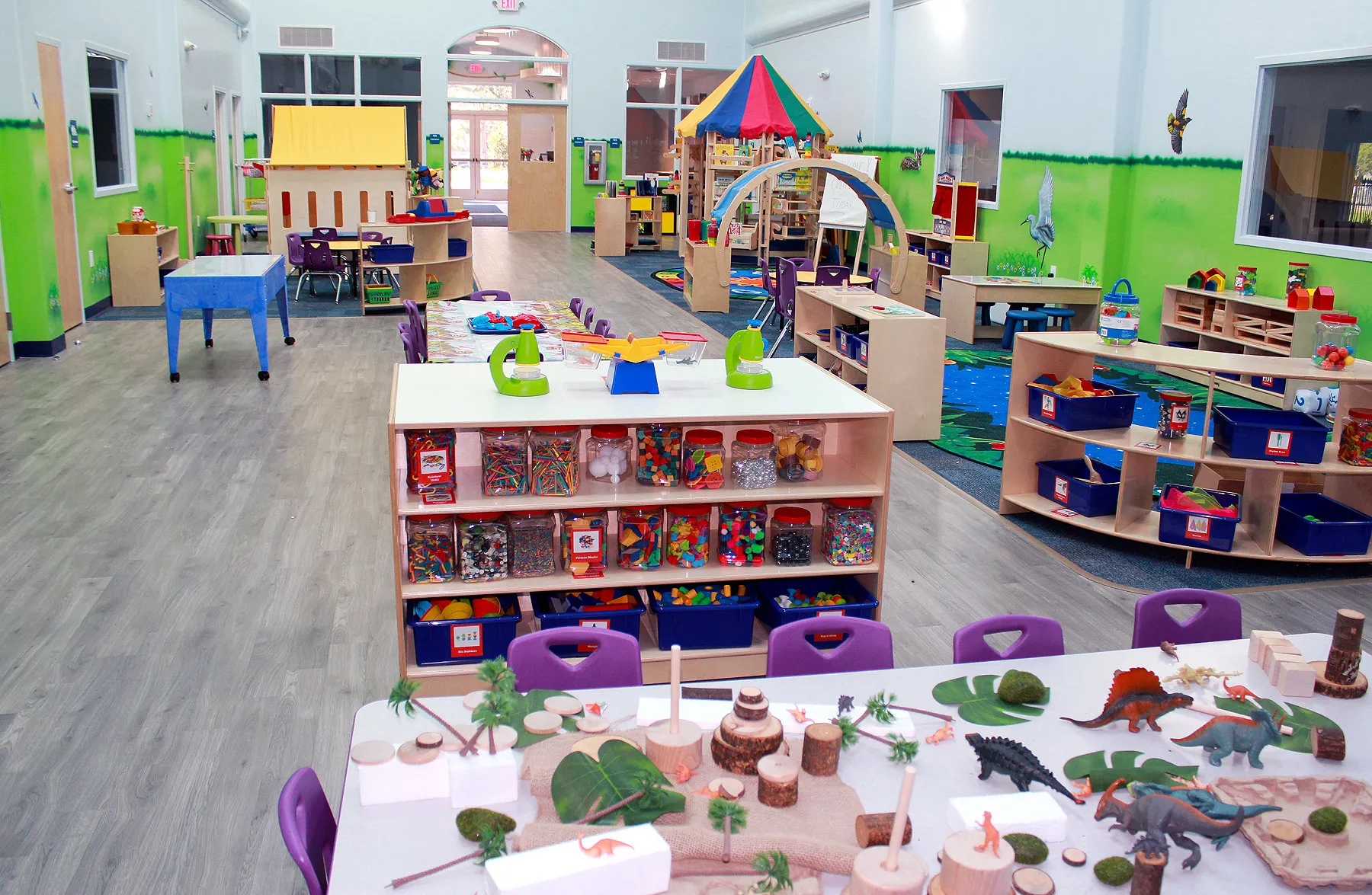 The 13,000 sf school accommodates up to 250 students, featuring a preschool for ages 3 months through 5 years and a before- and after-school program for students ages 6 to 10 years. It includes: Twelve age level appropriate classrooms, Full service kitchen, Multiple storage areas, Laundry facilities, Teachers Lounge, Exploratorium with eight sky-lights, Library, Owners Office, Reception Area, Multiple outdoor play areas with playground equipment.