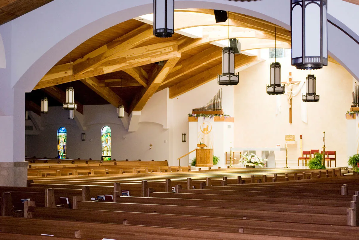 Originally constructed in 1986 by O‑A‑K, the sanctuary had a large skylight, exposed laminated beams with tongue and groove decking, stained glass throughout and a spanish tile roof and bell tower. Site-work and landscaping were included in this project.