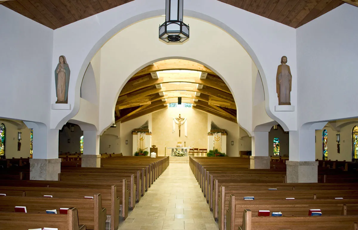 In 2009, O‑A‑K completed the construction of the 4,641 square foot single story addition to the sanctuary with no interruption to services. A 3,803 square foot renovation of the nave added new seating for 470 more people, chapel with 50 seats, men’s and women’s public restrooms, sacristy, ushers/bride room, narthex, cry room and two confessionals. Flooring and two walls were finished with Jerusalem limestone replicating the "Wailing Wall". Also included were HVAC infrastructures upgrades, new flooring throughout nave, major acoustics/sound system improvements and a parking lot expansion to add 256 spaces.