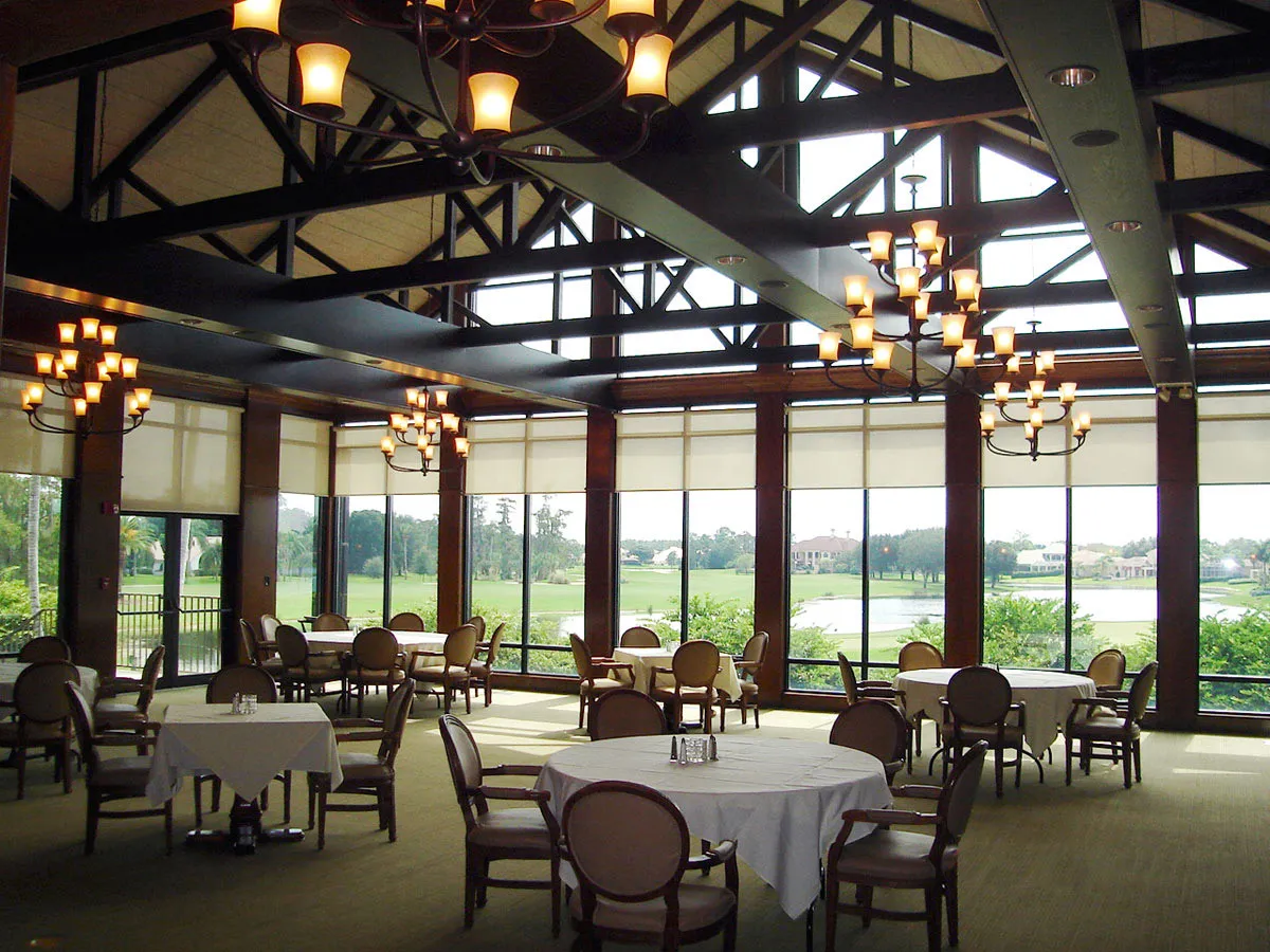 Completed in three phases, the clubhouse renovations consisted of 10,000 total square feet and the fitness center 7,500 square feet. The fitness center was designed to incorporate finishes to match clubhouse including high end architectural mill work and stone flooring. The interior included aerobics areas with special flooring, fitness equipment / workout areas, pro shop, locker rooms, steam showers and massage rooms. The clubhouse dining areas were completely renovated and the existing locker room was converted to the card/game room. An addition/renovation to the rear deck of the clubhouse expanded the seating area.