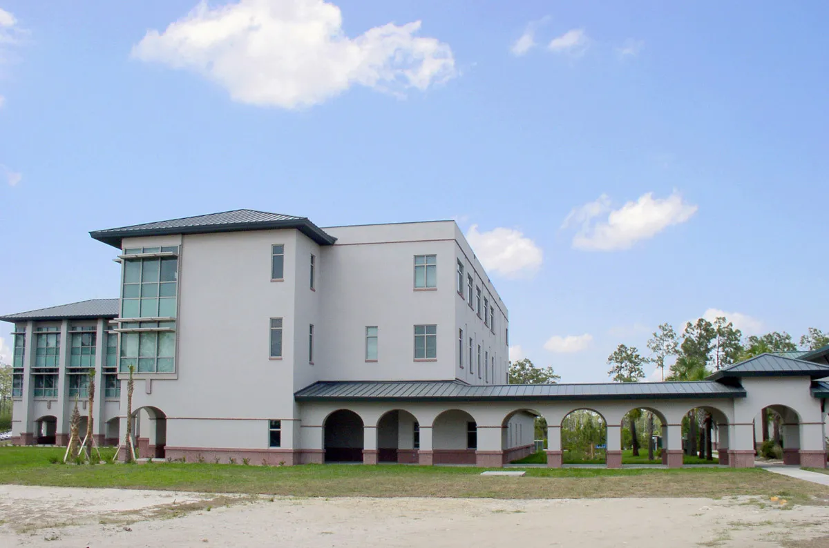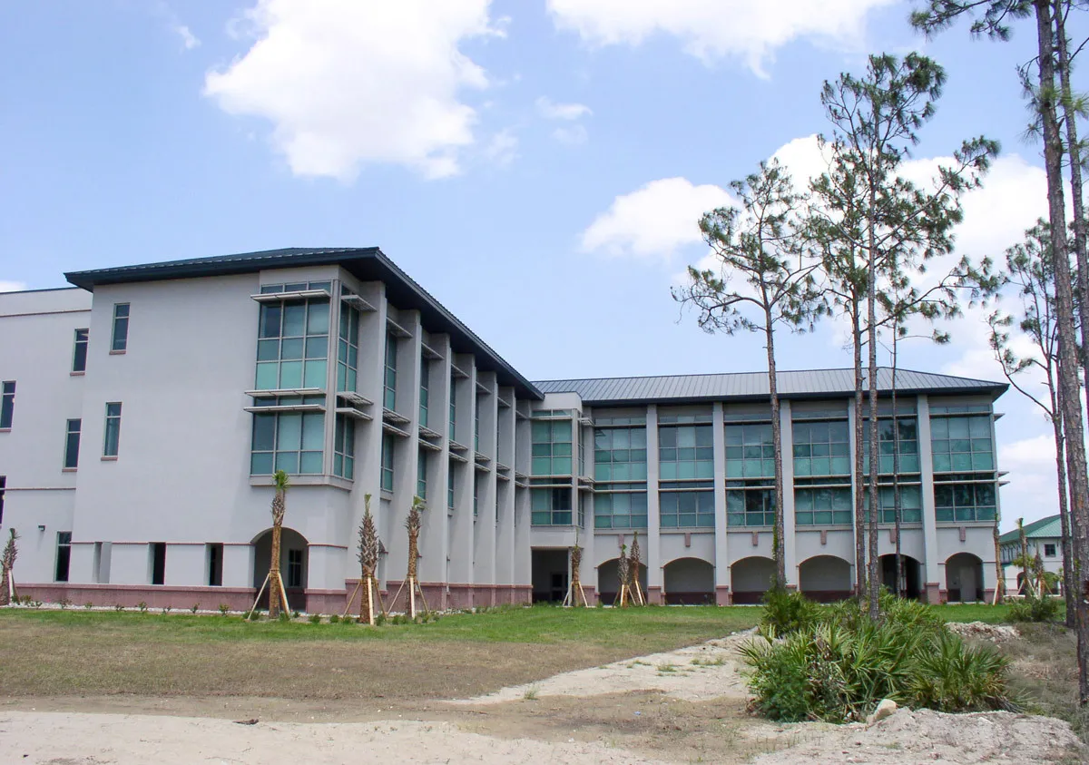 Known as "Academic V", this three-story teaching/learning facility contains multiple classrooms as well as a 180 seat amphitheater style classroom. University faculty and executive offices are also located in the building. Walkways were constructed connecting the building to "Academic III" building. It is tied to a chilled water system.