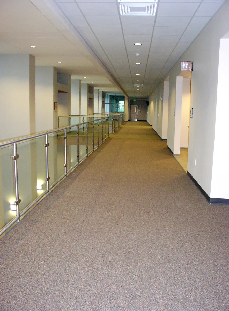 Considered the University's 'signature' building, Lutgert Hall, with it's 70' curtain wall height, was designed to be structurally different as it is the first building seen when entering the campus. Especially striking is the 24' 'Human Race' sculpture and fountain/pool at the front of the building. The facility holds the School of Business as well as offices, case study rooms, computer labs and has a student advisory wing. Lutgert Hall was built safely and on time while located 20 feet from another active classroom building on the job site.