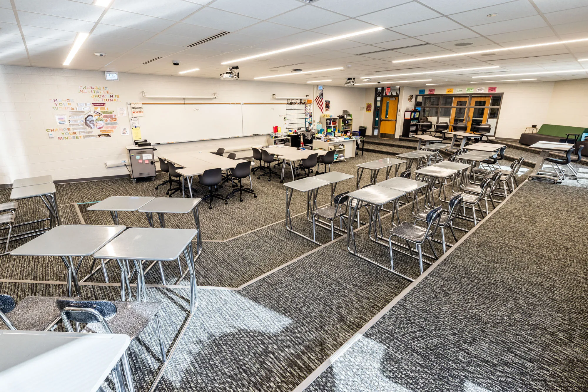This $8 million middle school transformation focused on modernizing learning areas and enhancing visibility between spaces. The new Central Middle features renovated classrooms, a science lab, storage rooms, a Collaboratory, breakout rooms, a presentation room, and more. Due to construction impacting all areas of the building, the work was split into four phases so that students could stay in class while renovations were underway.