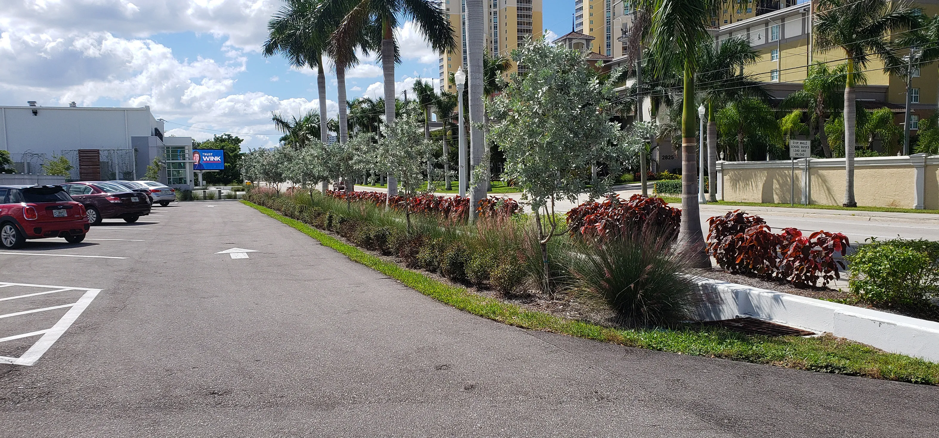 The parking lot expansion included new detention areas and dumpster enclosure. Front entry landscaping renovation included significant walkway, landscaping, trellises and bollards/light fixtures as well as changes to the lobby interior, new guest parking spots and building renovations at the main entry.