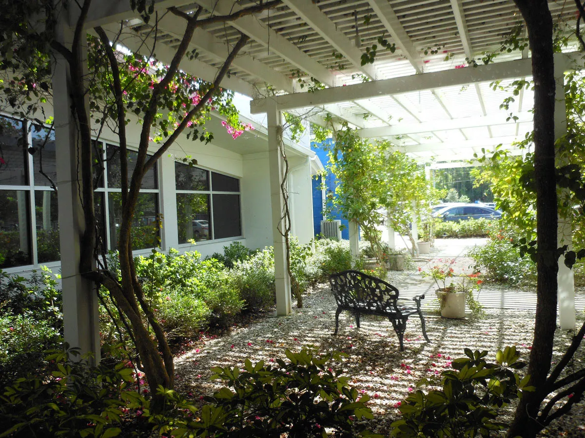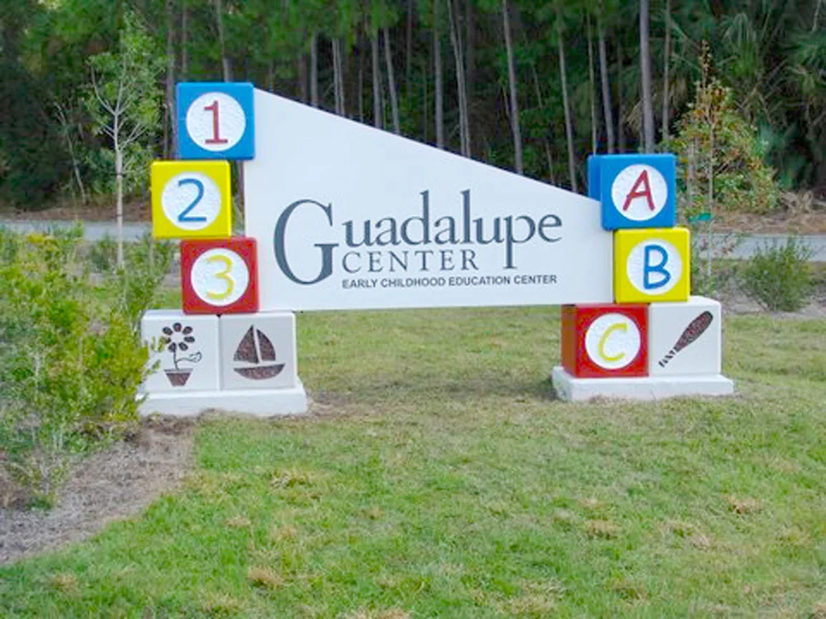 The early learning facility was designed for pre-K students as an education and care installation. The interior has over 20 classrooms, each with it's own restroom and many with a 'short' door for the students right next to the full sized door for the teachers. The remaining space contains administrative offices, lunchroom with kitchen and library. A sitting garden with trellis and outdoor play area are on site.