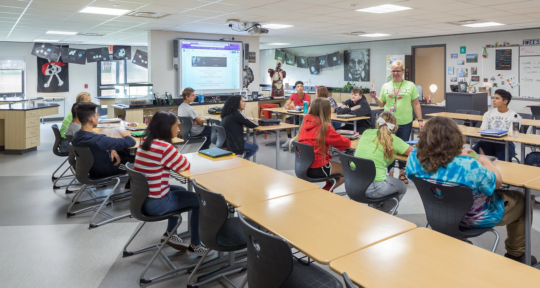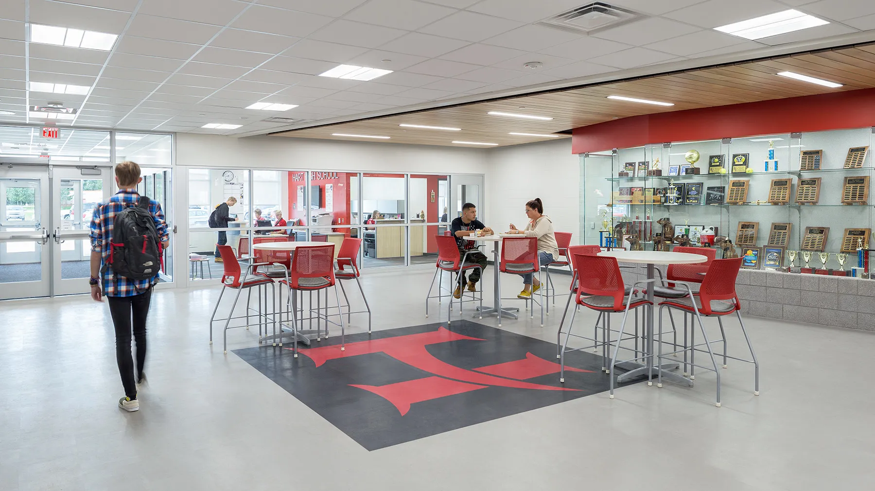 The High School received an added cafeteria, kitchen, office, and entrance, and the existing school underwent a complete renovation while students and staff remained in the building.