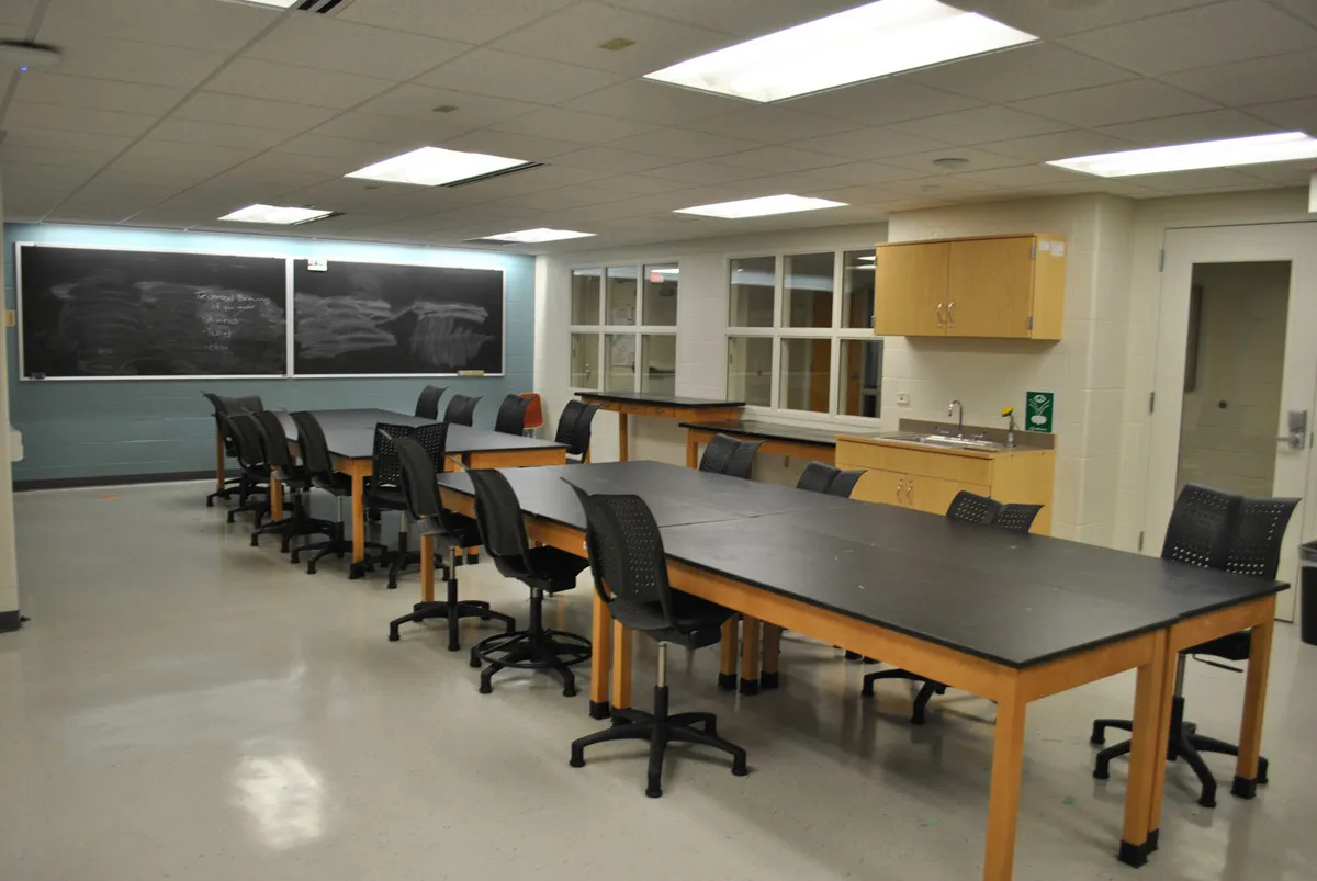 The ground floor provides additional space for research and equipment, helping the department expand the opportunities that it provides for students through collaborative faculty-student research and make the most of existing resources. For example, the program has an industrial-quality wind tunnel—built several years ago by students—that was formerly housed in another building.