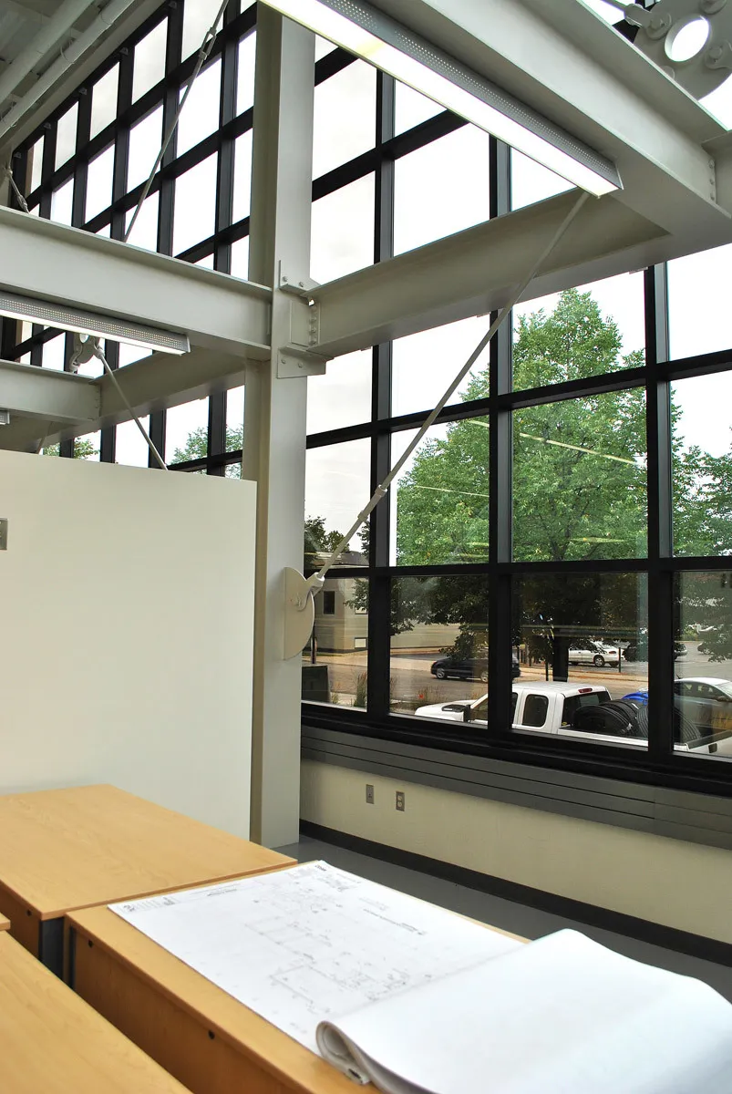This addition/renovation project included 9,000 sf of new space and renovations to the existing building. The Haworth Engineering Center now spans three levels containing a two story design lab with expansive exterior windows for natural light, nine new faculty offices, new laboratory spaces, and a new computer-aided design (CAD) lab that doubles the size of the former CAD lab.