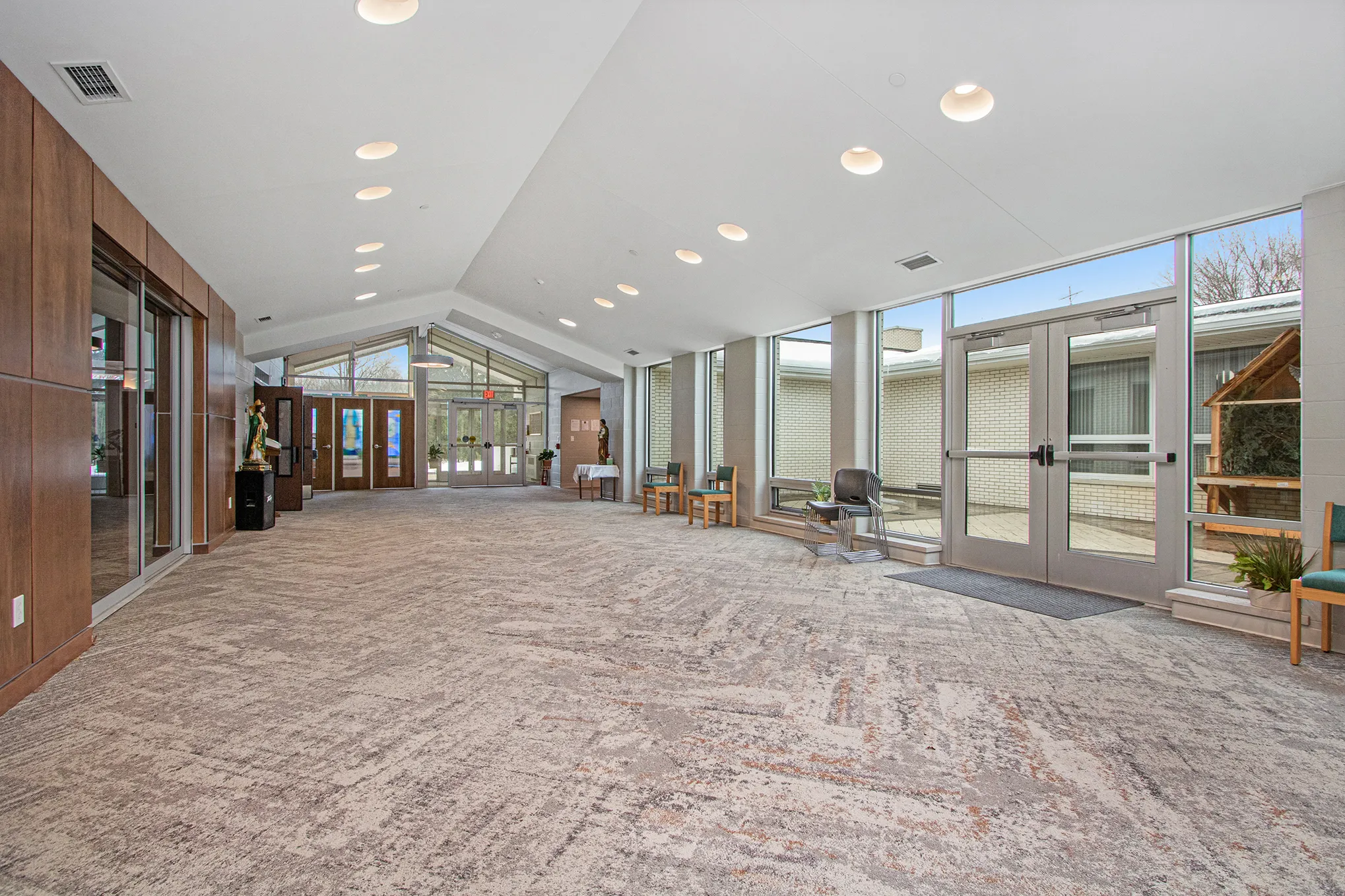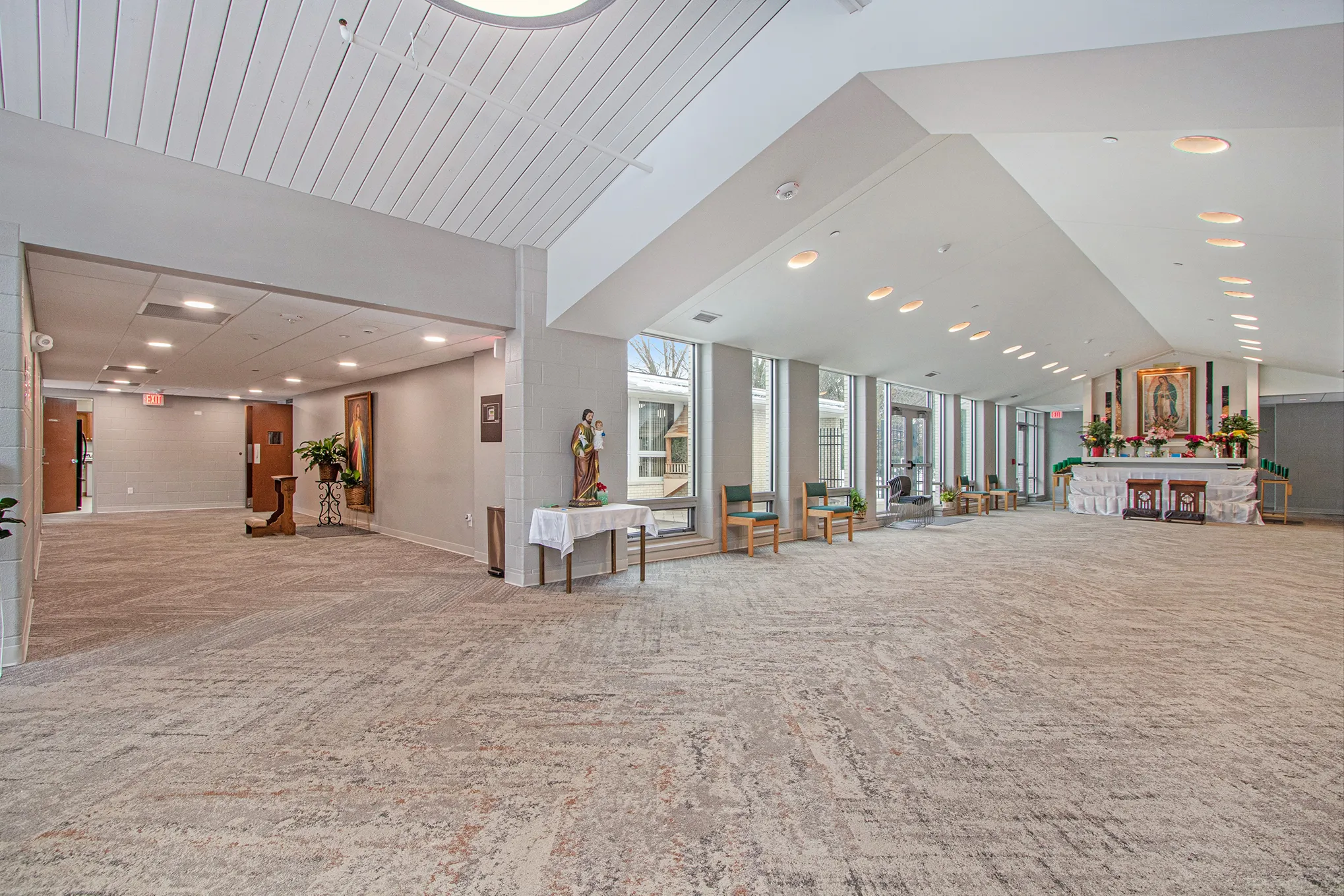 Immaculate Conception Catholic Church was renovated to expand space for the growing church and its visitors. The project scope included the addition of a new gathering hall, bathrooms, showers, a confessional, and a prayer courtyard. The building also received architectural finishes including paint, doors, carpet, and fencing upgrades.