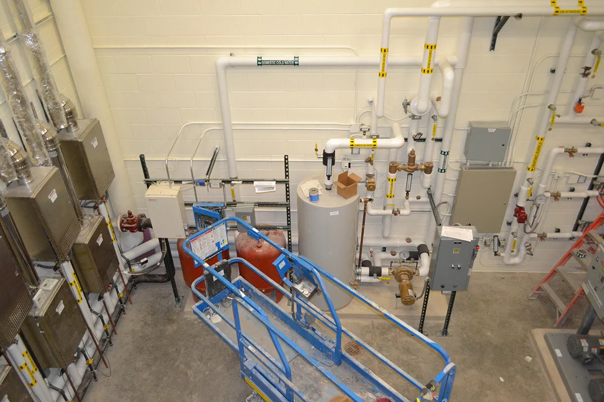 The entire new addition operates using a new geothermal heating and cooling system, which offers high operational efficiency.