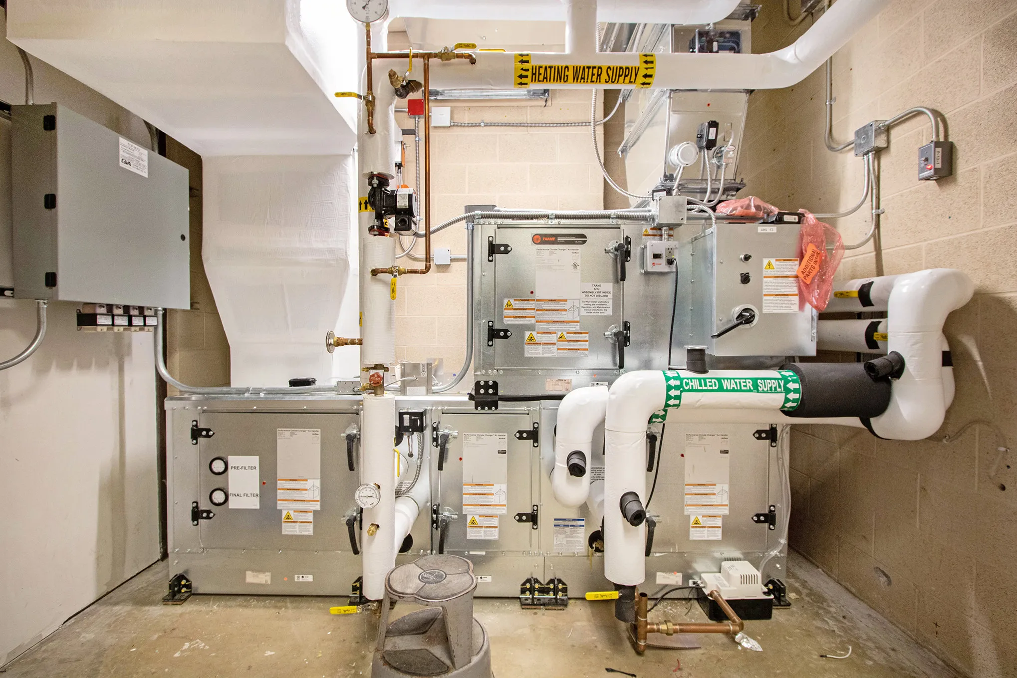 Work included modernization of heating, cooling, and ventilation systems serving the Mainstage Theatre, Hanson Theatre, rehearsal spaces, classrooms, and large event venues such as Grand Upton Hall. Construction was carefully coordinated within an active performing arts environment to minimize disruptions to academic programs, rehearsals, and public events. The project was completed in September 2025 and supports long-term operational savings and improved system performance.