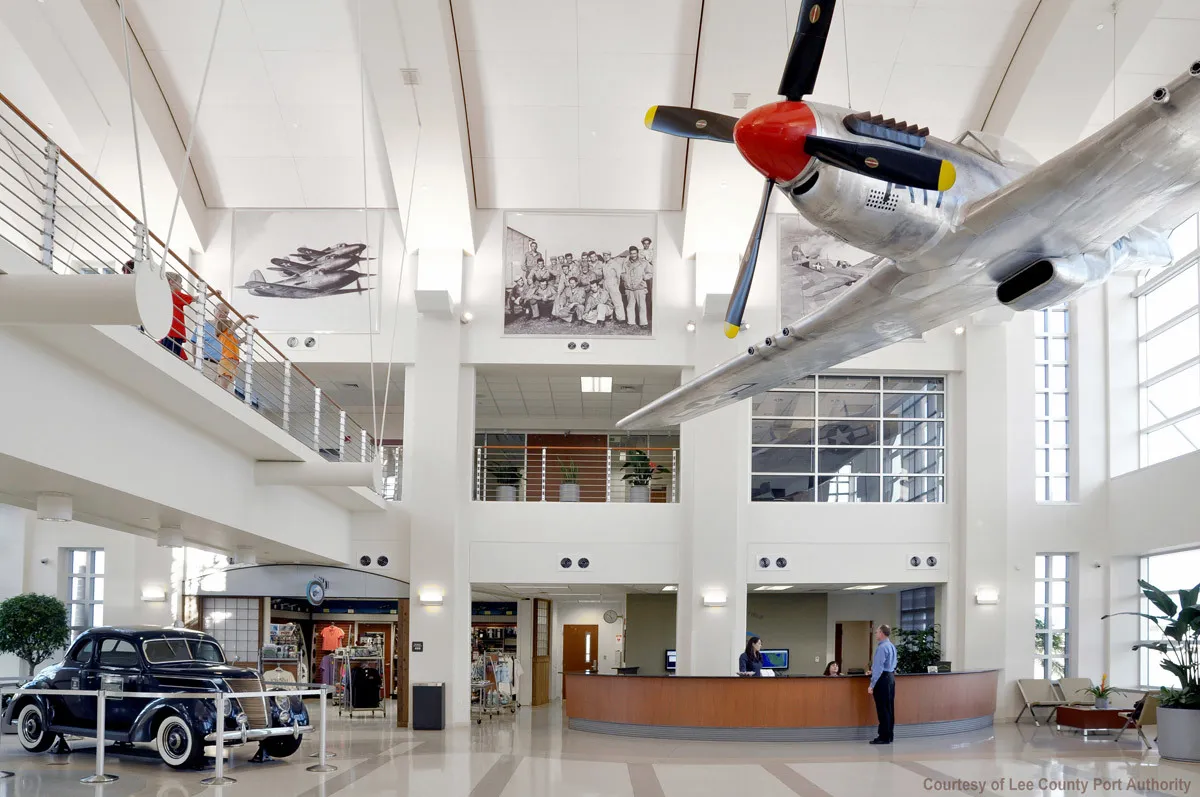 The design of the project incorporated items which honored Page Field's history as a WWII US Airforce advanced fighter training base while keeping current the modern conveniences of a general aviation terminal. It is LEED Certified and received a 2011 BIA Summit Award for Best Commercial Contractor / Public Works. Hanging from the roof structure in the main lobby is a full size replica of P-51D and on permanent display out side is an actual North American T-6 aircraft. Interior space accomodates a gift shop concession, small cafe and car rental station as well as office space for Port Authority employees and additional leased office space, seminar room and training room. For the pilots, there is a flight planning room, pilots' lounge, quiet room and rec. room along with a 210 sf galley. The solar panels installed on the multipurpose hangar allow weather monitoring for solar panel production. The project included a 24,000 sf transient aircraft hangar, 600,003 sf of ramp space with exclusive business aircraft parking and a 60,000 gallon aviation gas fuel farm.