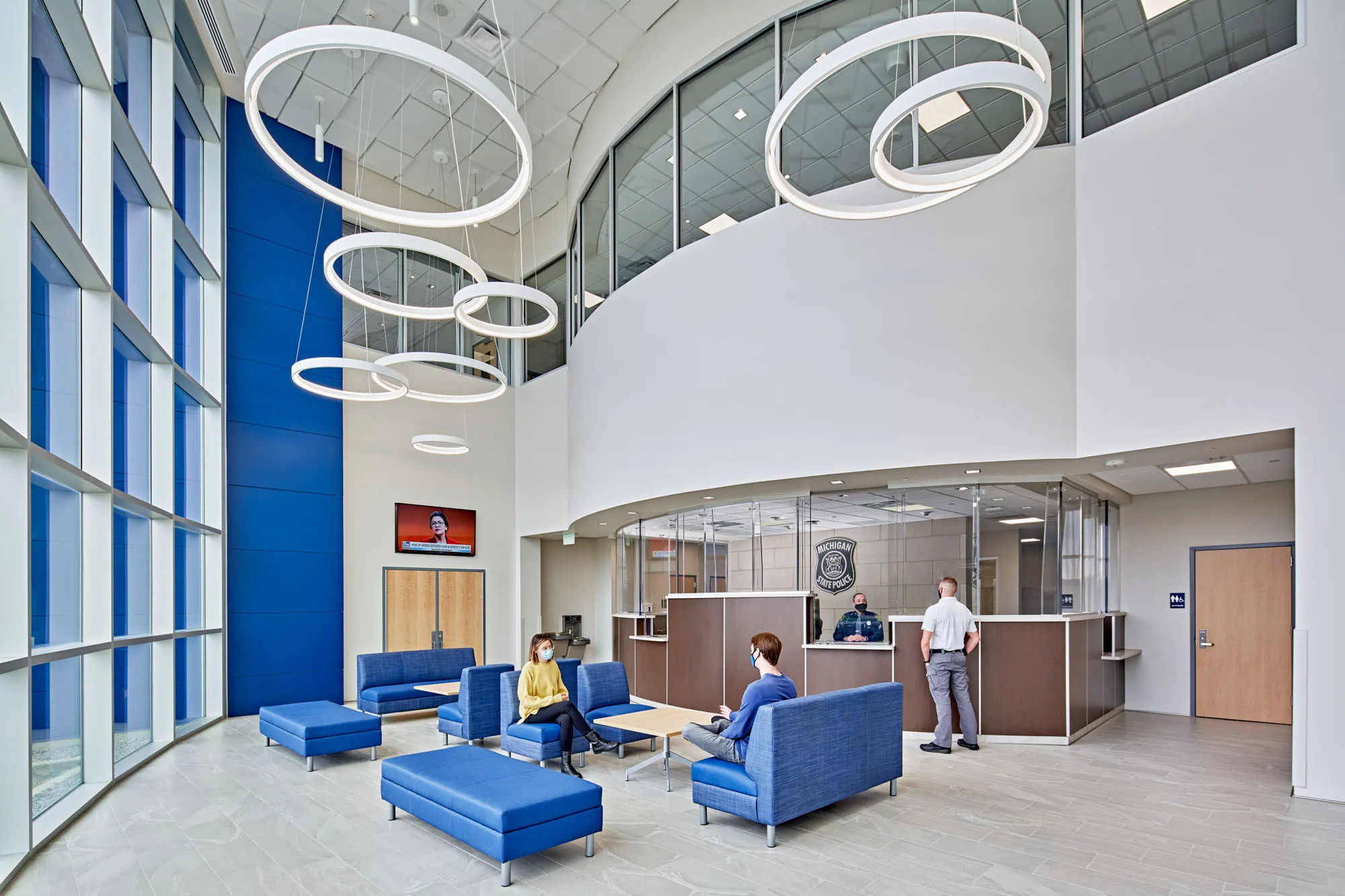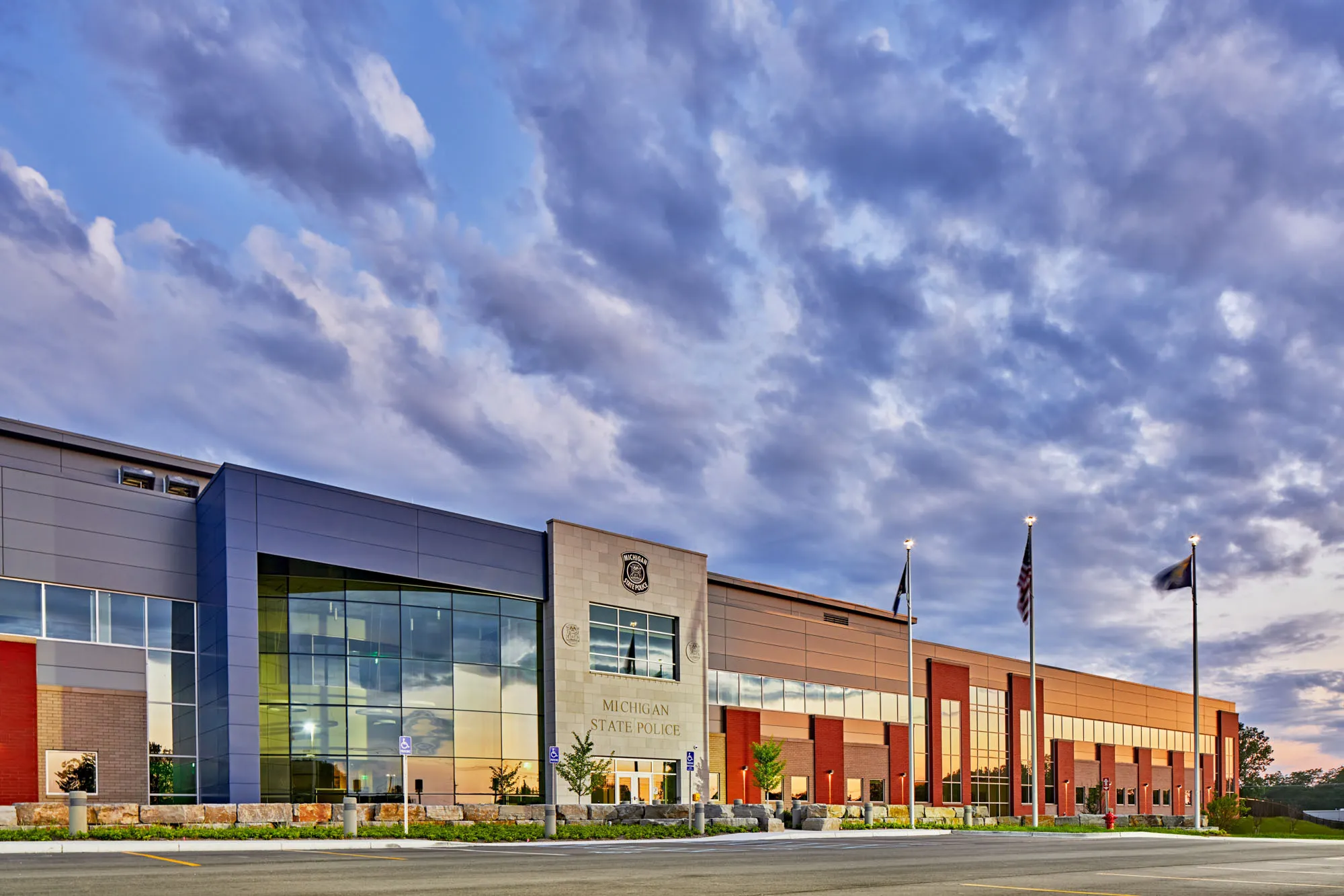 This new $57 million state-of-the-art headquarters project consolidated the existing Michigan State Police Rockford post, the 6th district headquarters, and the Grand Rapids forensic science laboratory under one roof to increase efficiency and decrease the cost of maintaining outdated buildings.