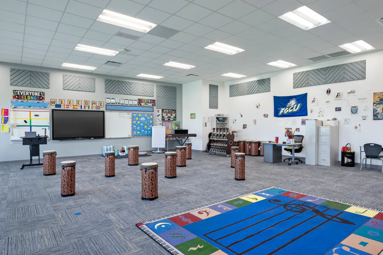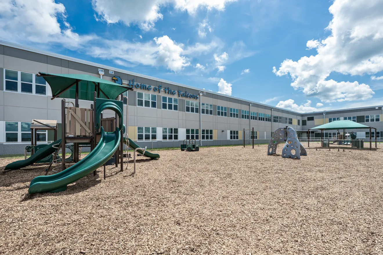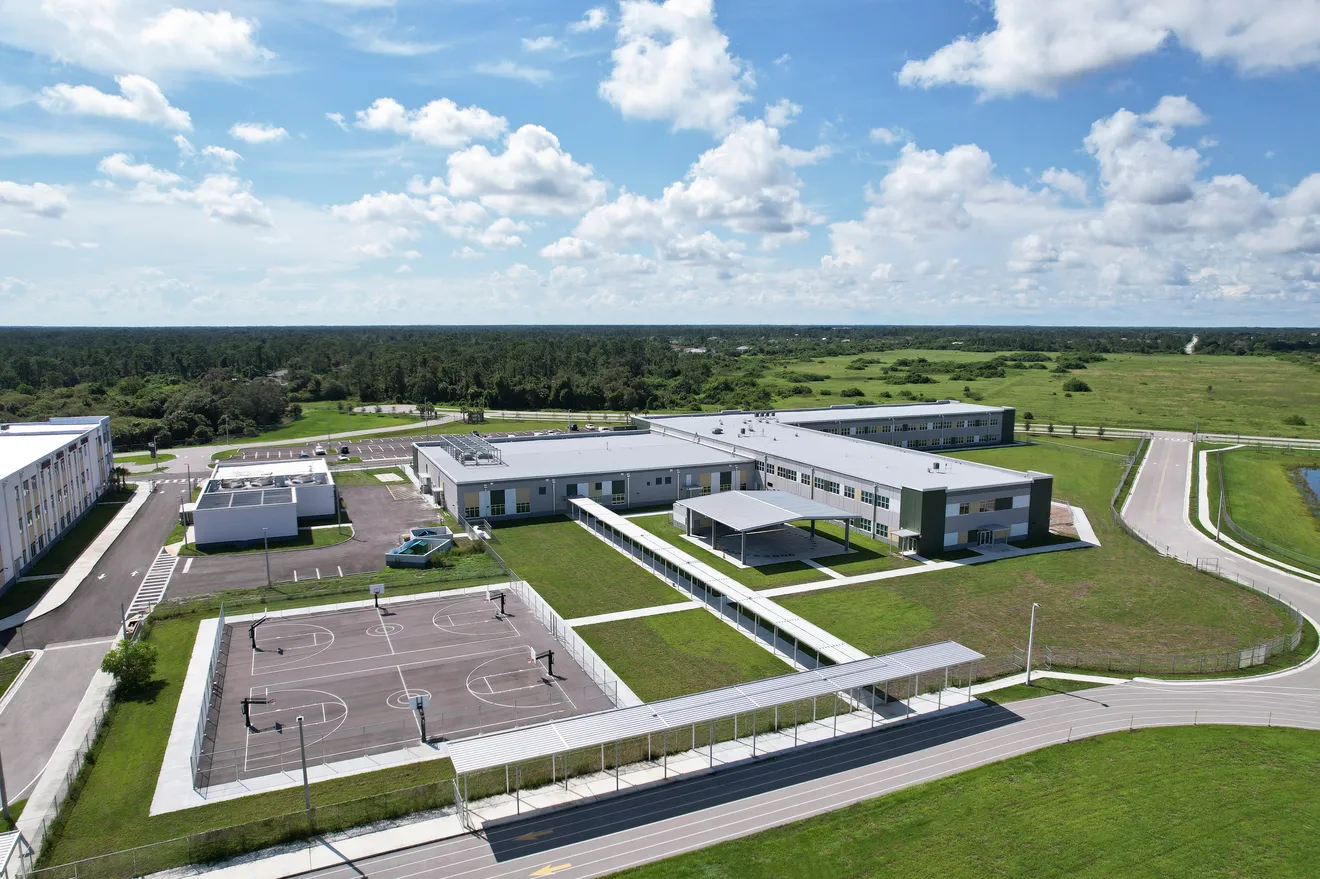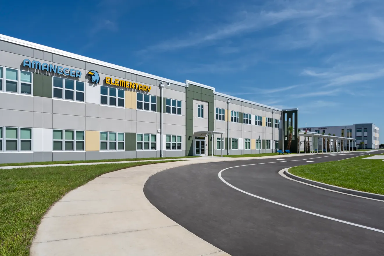 Amanecer Elementary School is situated on approx. 36.18 acres, next to the Lehigh Acres Middle School which O‑A‑K completed construction on in 2021. Amanecer Elementary School (completed in July 2023) has 1,034 student stations and utilized the District's prototype elementary school concept, updating and modifying the prototype design to meet both current codes and School District design change requirements. Included in the main building is the cafeteria/auditorium area with modern kitchen equipment including the largest walk-in freezer in the District. A separate 1,119 s.f. physical education building with 3,993 sf covered play area were also constructed. This project also included alterations to the previously built 4,930 s.f. central energy plant.