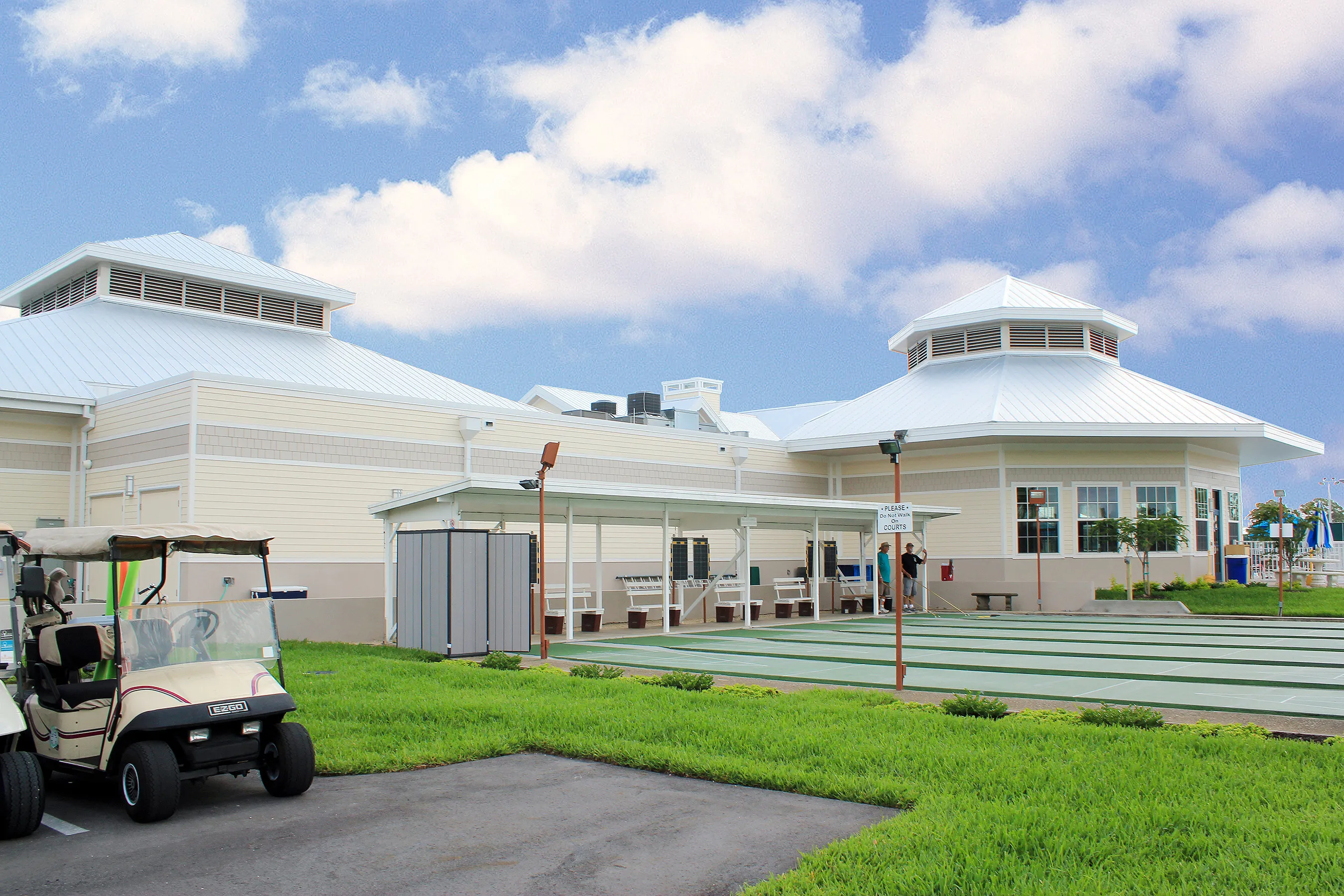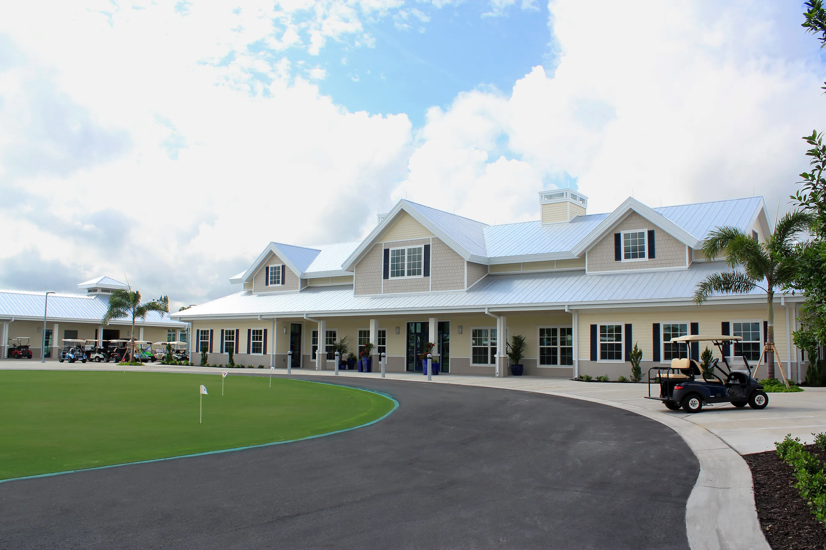 The new 21,000 sf facility replaced the Country Club’s 40 year old 16,000 sf clubhouse and includes a 70-seat full-service restaurant, cart barn, pro shop, sandwich shop, swimming pool and spa, administrative offices, a banquet/entertainment hall seating 400, community kitchen, card room, fitness center, billiards room, library and computer room. The new outdoor swimming pool and spa include two lap lanes and a large area for water aerobics. New to the clubhouse is the Sand Bar, a unique outdoor seating area with bar and food service. A new guardhouse at the property entry was also constructed.