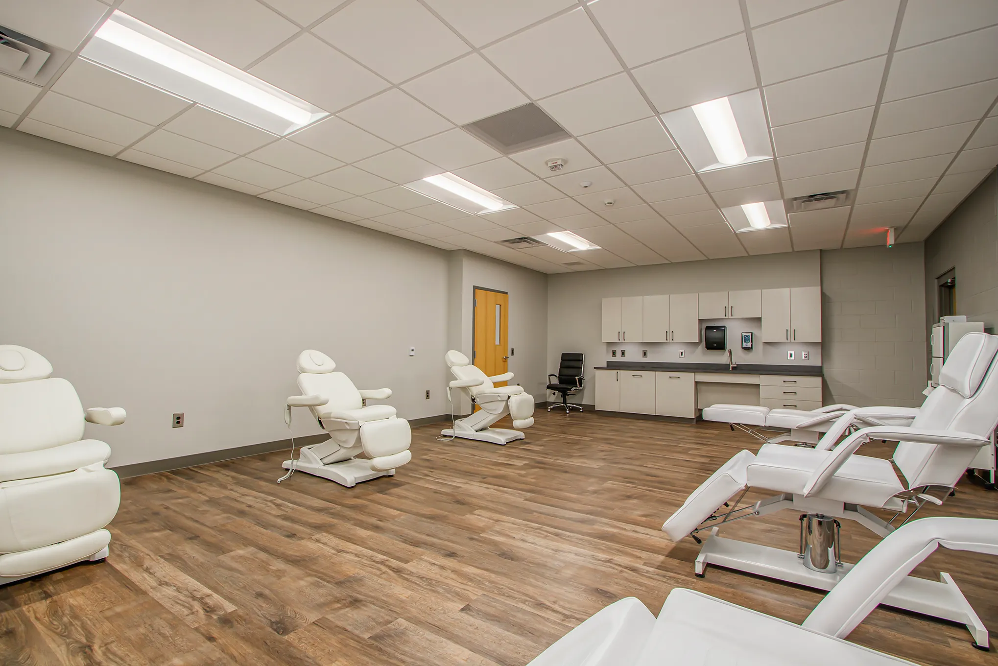 This project renovated and remodeled Van Buren Intermediate School District's cosmetology classroom and working lab, starting with interior demolition before adding all new mechanical, electrical, and plumbing into the space.