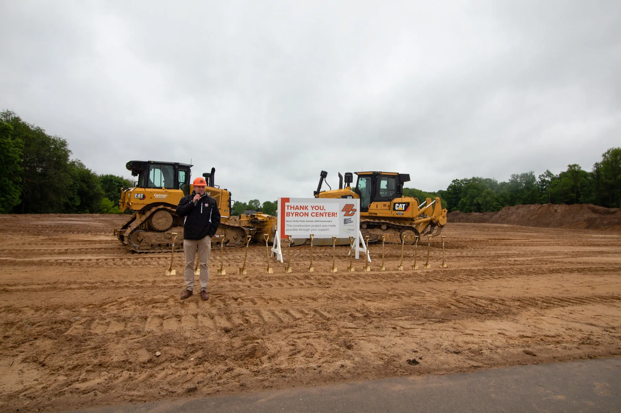 School board members, administrators, students, and project partners of Byron Center Public Schoolsgathered Friday morning to celebrate the groundbreaking of the new Nickels Intermediate Building, part of a $80.1 million bond program that was passed by voters in 2020. The new 5/6 building is scheduled for completion for the 2023/2024 school year.