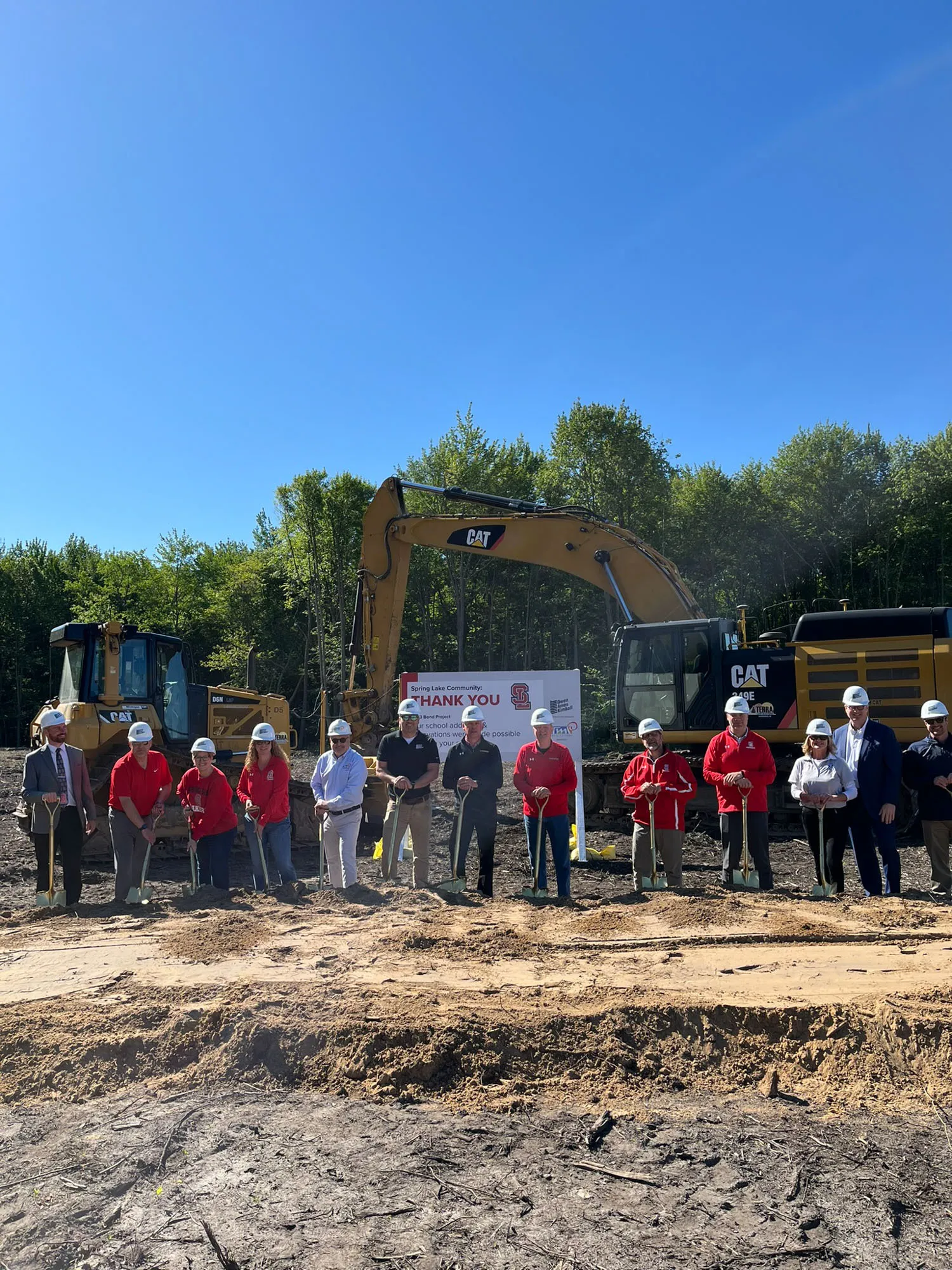 (Spring Lake, MI) May 30, 2024 – Staff at Spring Lake Public Schools broke ground on construction and renovations for the district on Tuesday, May 30th, signaling the beginning work for the district that will last from Spring 2024 through Fall of 2027. A brand-new athletic facility and new secure entry for the high school (both slated to open in the Fall of 2025) are major focuses of the upcoming 3.5-year project, but you can also expect to see various other projects happening across the district for our students, faculty, and community.