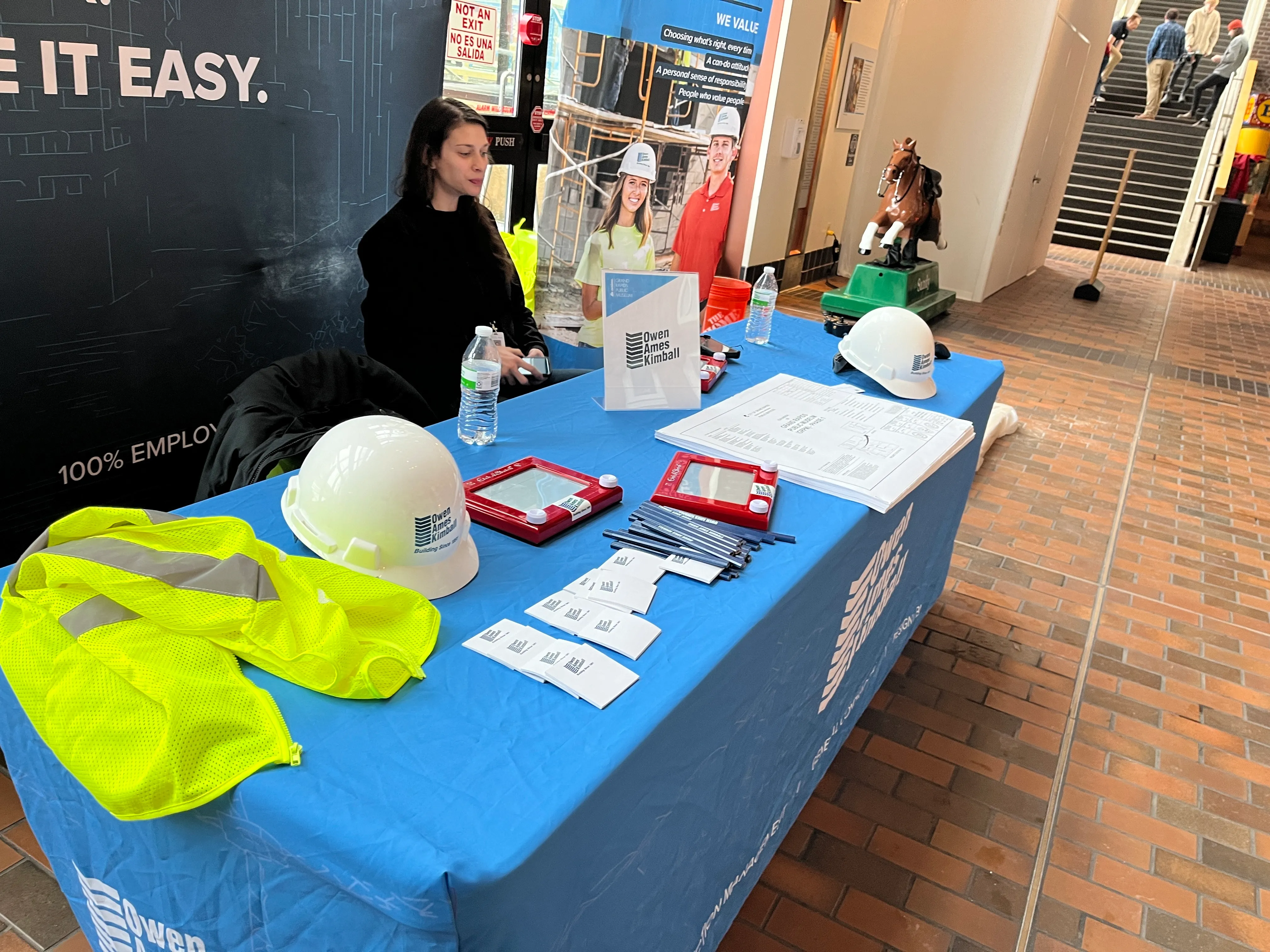 One special visitor to the O‑A‑K booth was a 4-year-old boy, who stopped by sporting the O‑A‑K hard hat he had been gifted as a regular visitor to the Frederik Meijer Gardens' job sites. He was filled with questions about the prints and the ongoing construction, which Project Manager, Dave Fleece and Assistant Superintendent, Tori Brayton were more than happy to answer as they prepped their future coworker for a career in construction management.