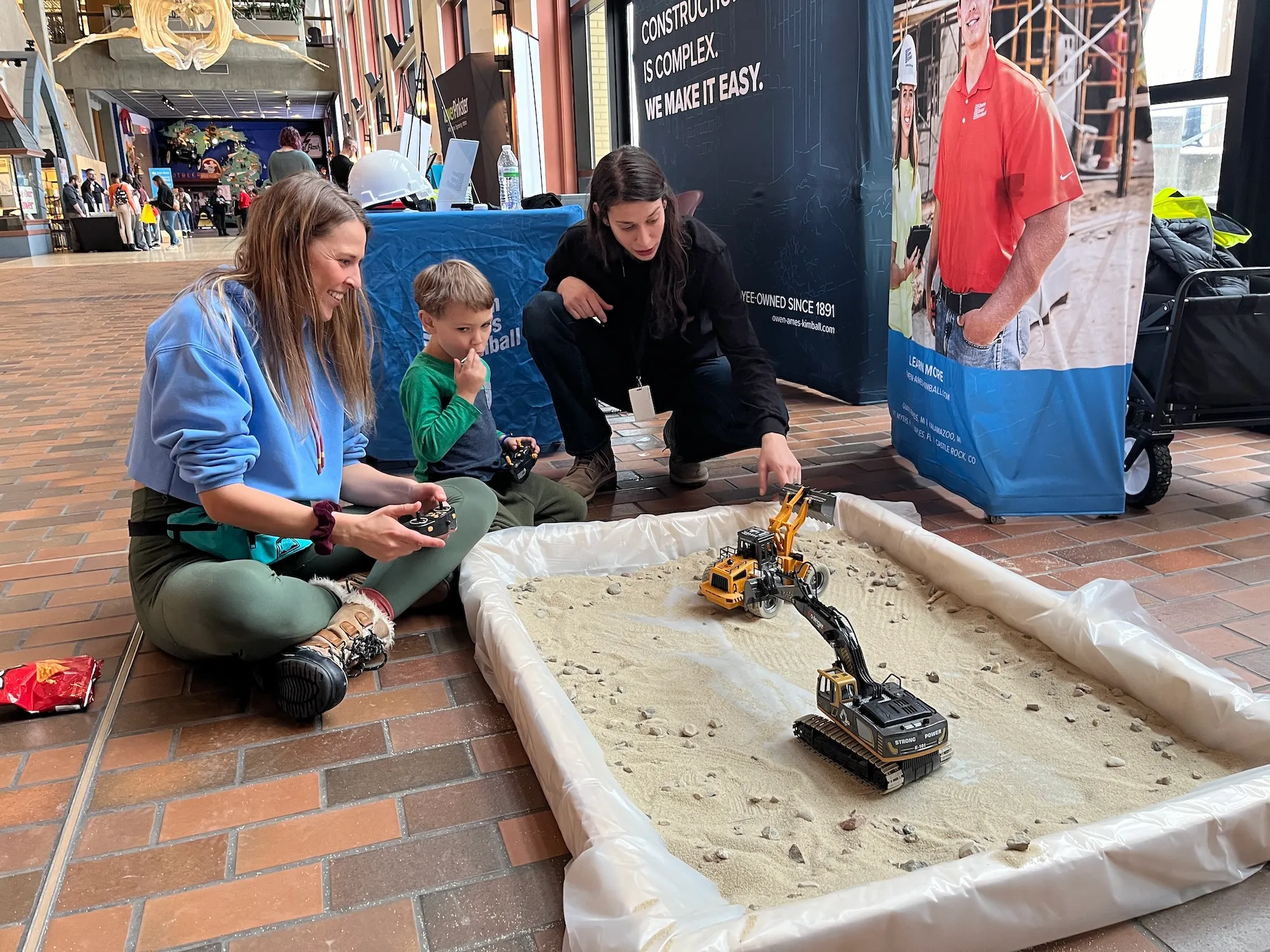 O‑A‑K is currently partnered with Grand Rapids Public Museum on a multi-year expansion and renovation. As part of this partnership, GRPM approached O‑A‑K to participate in their Engineering Day event, which exposes children to STEAM concepts via hands-on play. Together, O‑A‑K team members Dave Fleece, Phil Veenhoven, Tori Brayton, and Jennifer Kloosterhouse designed a booth to educate young learners on the construction happening right outside the museum’s windows. Among these activities was a plastic tray filled with sand and toy construction vehicles, which the kids could use to simulate their larger counterparts, which are currently working on expanding access to the Grand River. The team also displayed museum blueprints and encouraged children to identify where certain points of interest were in the real world.