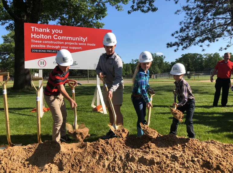 Students, staff, parents and community supporters of Holton Public Schools gathered Monday evening to celebrate the groundbreaking of the district’s $6.9 million bond project. The project will focus on making the schools safe and secure, and warm and welcoming. The first summer of construction projects is currently underway.