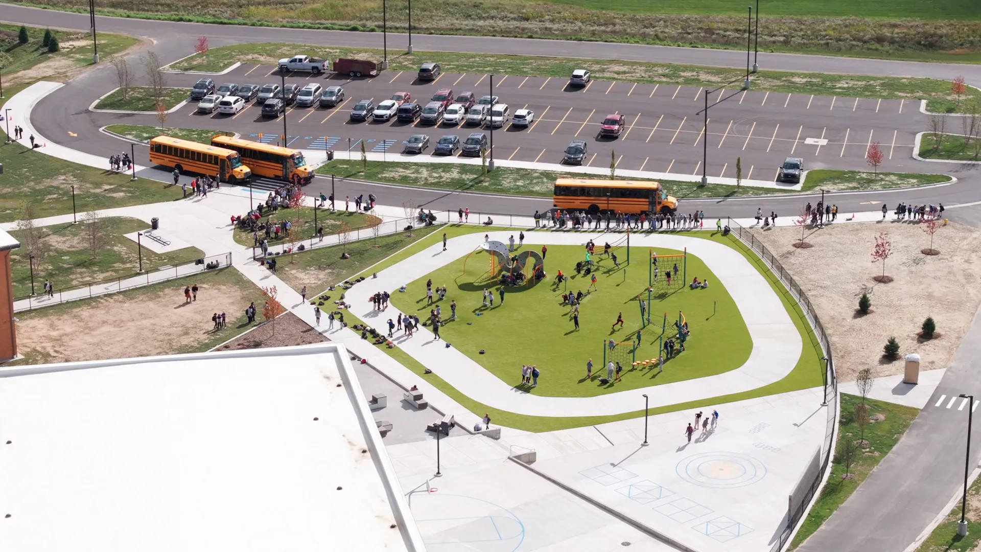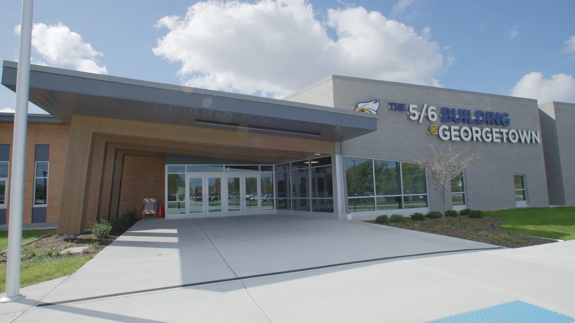 Hudsonville Public Schools has officially opened their new intermediate school, The 5/6 Building @ Georgetown. Hear from Hudsonville superintendent Dr. Doug VanderJagt, O‑A‑K Superintendent Ethan Elzinga, and lead architect Tom Danckaert on what makes the school unique, such as the tiered entry structure which has students entering on the building's second floor.