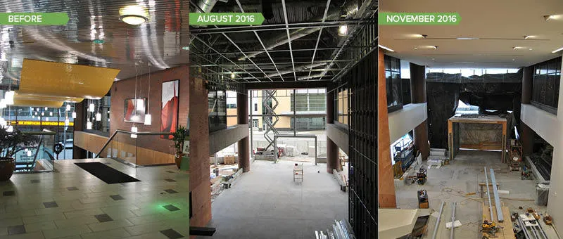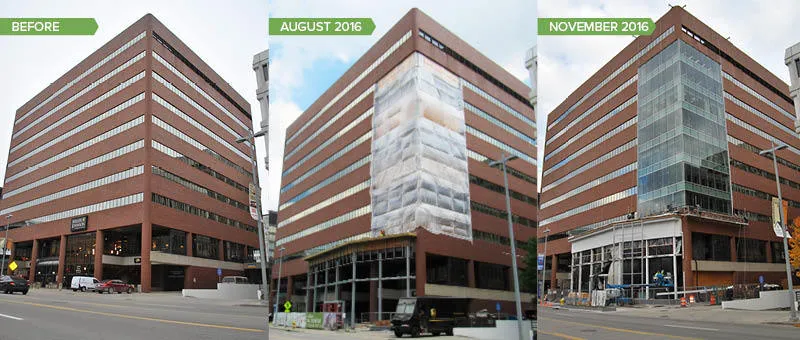 The transformation of 250 Monroe in downtown Grand Rapids includes a new glass curtainwall at the Monroe Street level, lobby upgrades, and improvements to shared tenant areas. This major renovation project to the upscale office building is scheduled for completion this winter!