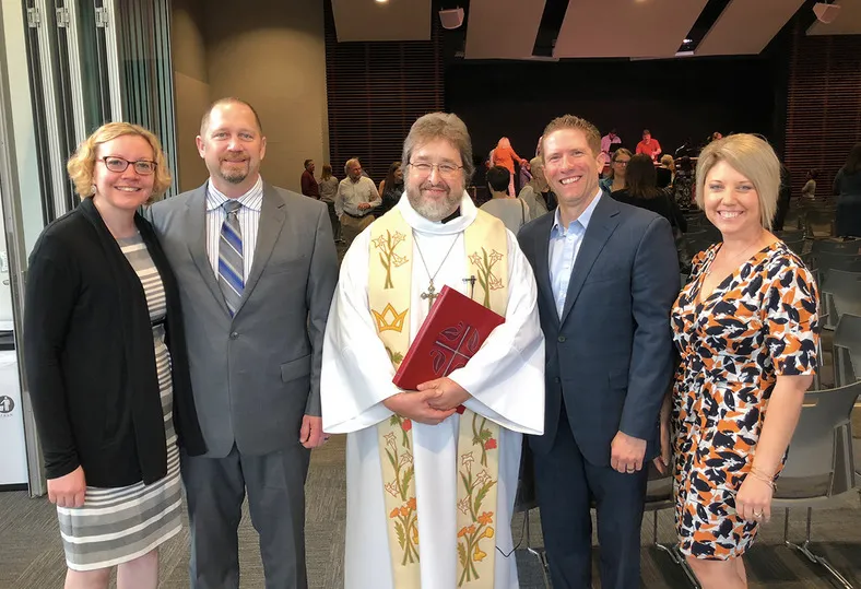 Several additional contributors were recognized at the dedication event, including church member and expert craftsmen, Gene Gunderson, who volunteered his talents to build a custom altar, pulpit and baptismal font using reclaimed wood from former church pews. Among the others recognized were church building committee members, project donors, Progressive AE (design firm), and Owen‑Ames‑Kimball Co. (construction management firm).